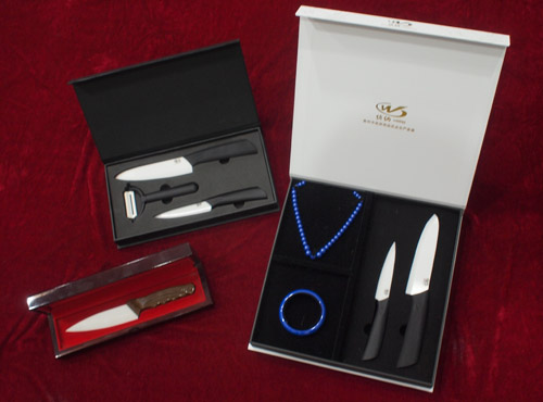 陶瓷刀,外觀如玉石般潔白柔和,色澤圓潤。用于現(xiàn)代廚房。它打磨的刀刃及刀面均勻一致切削靈巧方便,刀刃鋒利,硬度僅次于金剛石,陶瓷餐刀體現(xiàn)的是新世紀(jì)新材料的綠色環(huán)保概念?! 、?陶瓷刀不生銹變色,健康環(huán)保,可耐酸堿的腐蝕?! 、?便于清洗,能保持食品的原色、原味,減少細(xì)菌滋生?! ?